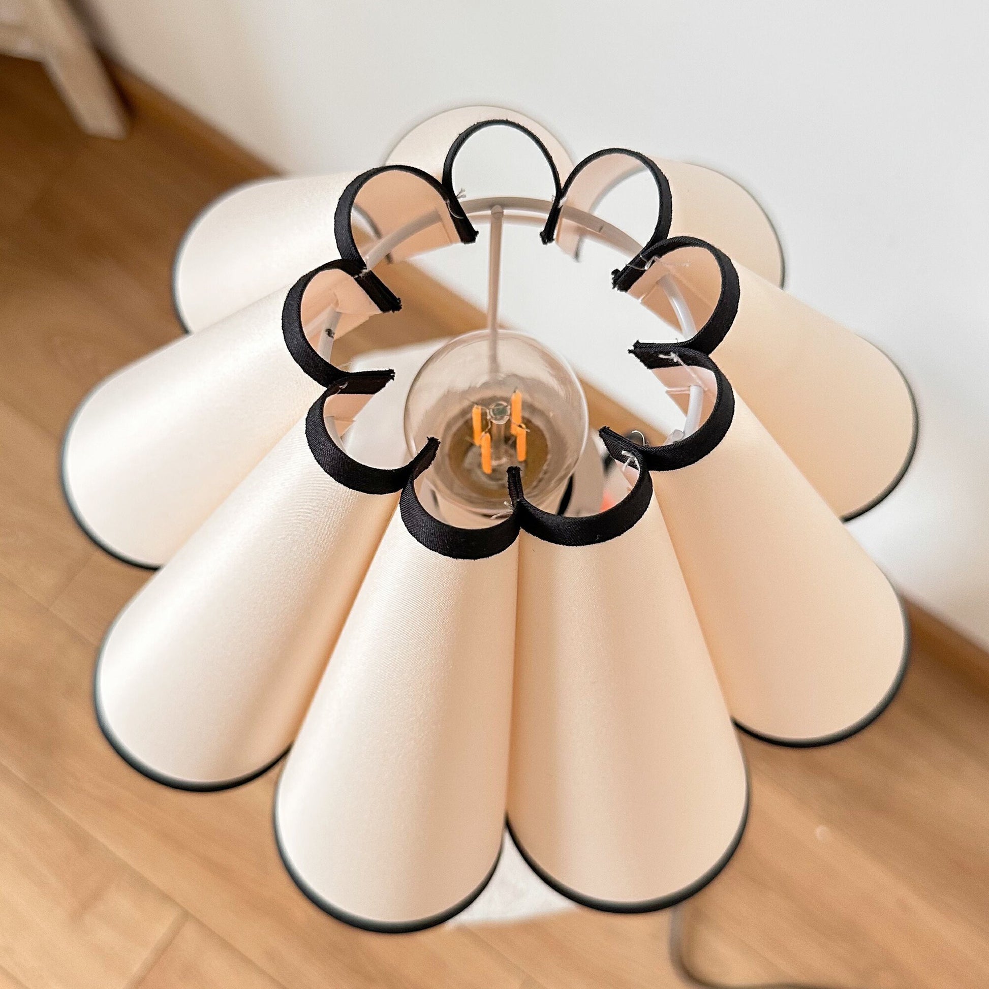 This handmade ceramic lamp comes in a warm orange glaze and a pleated scallop shade with black trim. It works well in bedrooms, living areas, or kitchen corners where you want soft mood lighting.